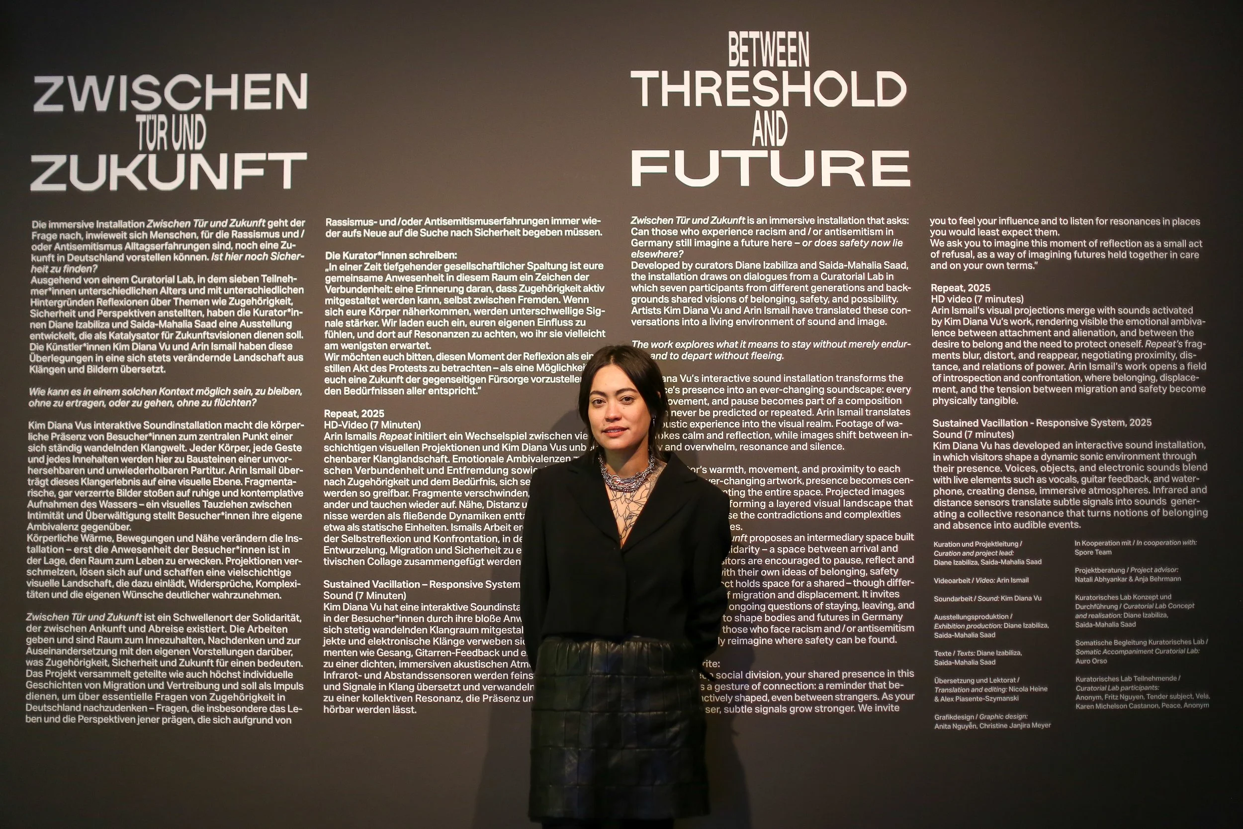 Die Installation greift hochaktuelle Themen rund um Migration, Asyl und gesellschaftliche Spaltung auf und lädt Besucher*innen dazu ein, sich eine Zukunft vorzustellen, die imstande ist, mehr abzubilden, als nur die Frage nach dem Bleiben oder Gehen. Die Stimmen derer, die Rassismus und/oder Antisemitismus in Deutschland am eigenen Leib erfahren, dienen hierbei als roter Faden und ermöglichen ein Andersdenken gängiger Narrative über Zugehörigkeit und Perspektive.